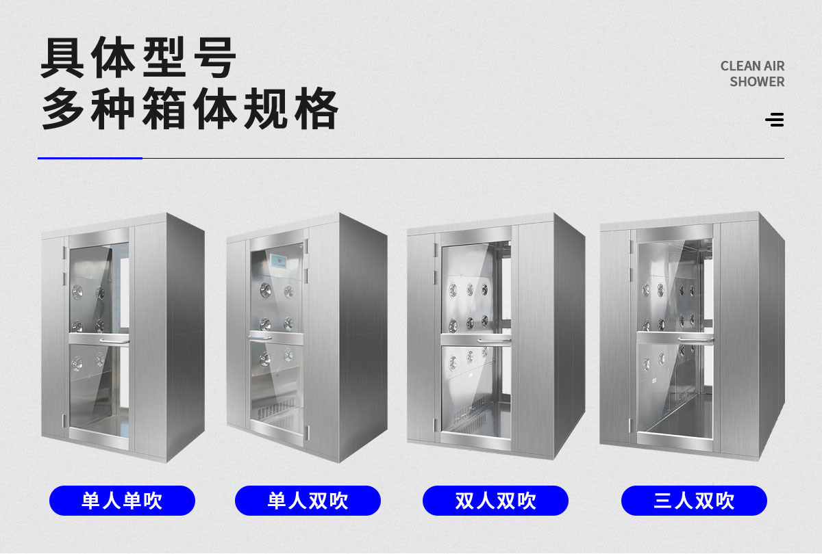 不銹鋼風淋室,201/304材質,整體防腐耐用,適用于食品車間,電子車間,醫藥車間,實驗室等潔凈場所。